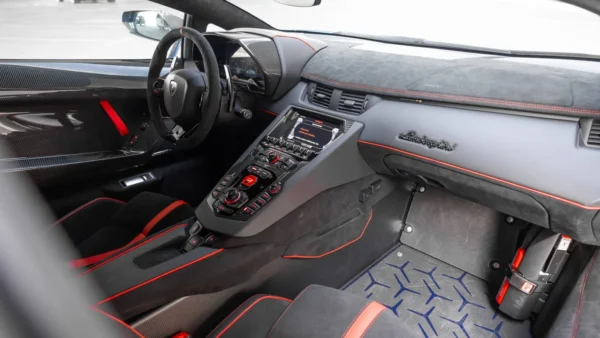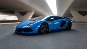 Book your Lamborghini Aventador SVJ Blue rental in Sharjah today!